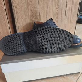 Vendo scarpe da uomo Exton in cuoio blu, eleganti e leggere.