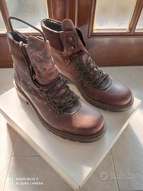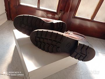 Scarpe uomo invernali modello anfibio in pelle colore cuoio naturale n° 45 mai usate veramente nuove con scatola originale