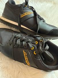 Scarpe uomo Lamborghini nere con scritta color oro. Usate pochissimo. Ottime condizioni. Numero 41. Dotate anche di scatola.