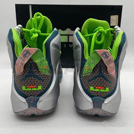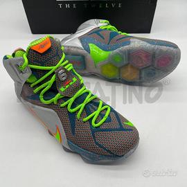 SCARPE UOMO NIKE LEBRON XII PRM AZZ/ARANC/VERDE INS ARGENTATO TRAMA RETE OTTIME CONDIZIONI PARI AL NUOVO CON SCATOLA ORIGINALE TAGLIA 44.5