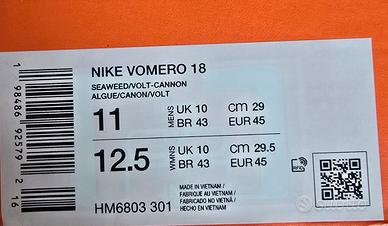 vendo scarpe Nike Zoom Vomero 18 - Uomo Taglia 45, acquistate sul sito foot locker usate una volta sola a casua del numero errato, possibilità di visionare senza impegno, non spedisco