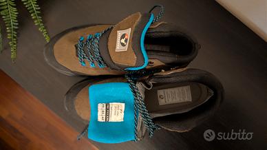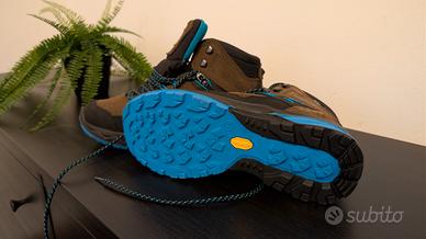 Vendo un paio di robusti scarponcini da trekking da uomo del marchio Berrendo, taglia numero 44 (29 Mex / 10 USA / 10.5 UK - vedi etichetta in foto). Queste scarpe sono state usate pochissimo e si presentano in eccellenti condizioni, quasi pari al nuovo, come visibile dalle foto dettagliate. Caratteristiche principali: Marca: Berrendo Colore: Tomaia in pelle scamosciata marrone con accenti nero tecnico e vibranti dettagli in blu ciano (intersuola, passalacci, lacci, interno linguetta). Condizioni: Ottime, suola quasi intatta. Suola: Suola tecnica con tecnologia Vibram, che garantisce un grip eccezionale su terreni sconnessi, bagnati e scivolosi, oltre a un'ottima ammortizzazione. Lacci: Lacci rotondi, bicolore (blu e nero), molto resistenti. Interno: Confortevole imbottitura blu ciano sulla linguetta per un'ottima calzata