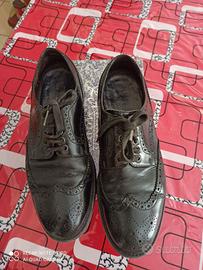 Scarpe uomo vera pelle, nere, n. 42 , modello Francesina. Suola e tacco in gomma antiscivolo. Artigianali, stile classico, made in Italy