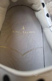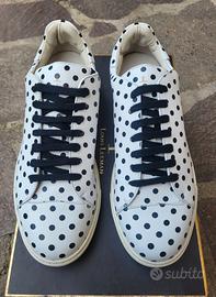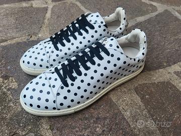 sneakers da uomo nuove mai indossate marca louis leeman in pelle colore bianco con pallini neri con suola in vera gomma numero 42 made in italy