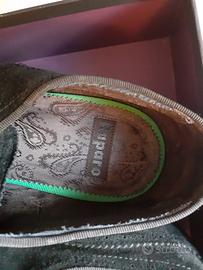 Scarpe artigianali fatte a mano in Italia, scamosciate, indossate pochissime volte, vestibilità abbondante fino a numero 44.5.