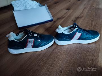 Vendo sneakers blu scuro con suola bianca perché leggermente grandi, sono state usate una sola volta.