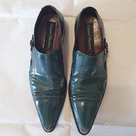 Scarpe da uomo usate n° 42 originali "Cesare Paciotti" effetto vintage di vernice⁸ turchese, con un trattamento di fabbrica che da l'effetto vintage, leggermente abrasivato ma non è usura, come da foto. Con scatola originale. Possibile ritiro a mano e/o spedizione a partire dal 25 febbraio 2026.