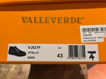 Polacchini uomo Valleverde, pelle nera, con apertura laterale a zip, facilissimi da indossare, comodissimi. Con suola in gomma antiscivolo. Nuovi con scatola e mai indossati. Numero 43.