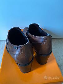 Vendo scarpe da donna, marca Valleverde, numero 36, color marrone in pelle, nappa tabacco. Usate in due occasioni Ritiro solo a mano Prezzo poco trattabile