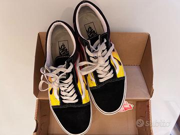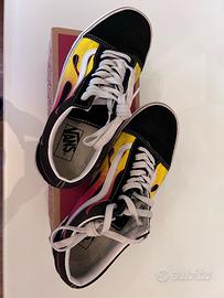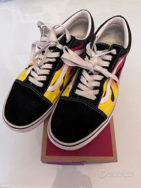 Scarpe VANS modello "Old Skool", decorazione "Flame" su fondo nero.