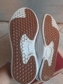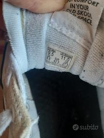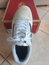 Scarpe da ginnastica uomo Vans modello Old Skool Over n.42 5, ottimo stato ed utilizzate pochissimo. Rivestimento in nabuk beige sulla punta ed intorno ai lacci, lateralmente stoffa bianca trapuntata con strisce blu e bordo in gomma a contrasto. Scatola originale.