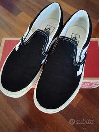 Scarpe Vans slip on, col. nero e striscia bianca, n. 39.