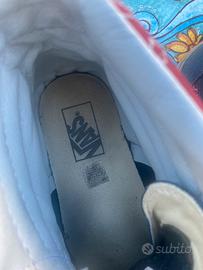 Scarpa da uomo, pelle scamosciata, blu e stoffa ricamata, bianche e rossa 45.0