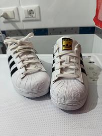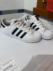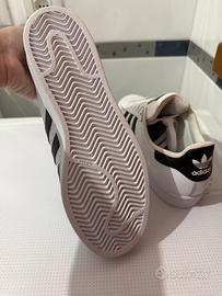 Adidas super star mai usate ho messo anche la foto del sotto scarpa perché le ho solo provate. A me e grande. Non ho piu la scatola perché e stato un regalo però sono nuove. In foto c’è anche la misura