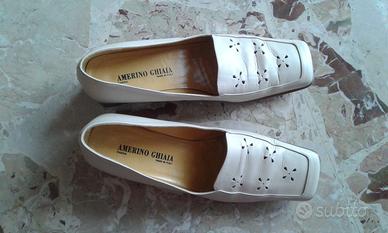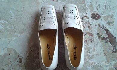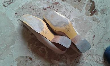 Vendo scarpe vera pelle con suola cuoio, tomaia traforata color sabbia, numero 39, tacco circa 3,5 cm., marca Amerino Ghiaia Parma Made in Italy, indossate solo una volta.