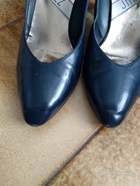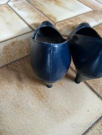 décolleté, blu, tacco medio, vera pelle e vero cuoio, made in italy