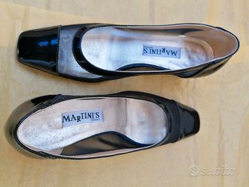 Eleganti Scarpe Martini's decolté estive con tacco medio comode in Vera Pelle e Cuoio n. 36 Tomaia in Vera Pelle a vernice, interno in Vera Pelle, suola in Vero Cuoio. Indossate poco.