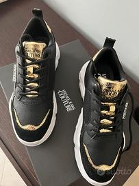 Scarpe originali Versace nuove mai usate complete di scatola originale Colore nero oro e bianche numero 37