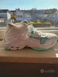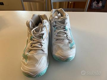 Scarpe volley Mizuno donna numero 37 uk 4.5 modello wave lightning z8 mid colore bianco verde menta usate 1 mese praticamente nuove acquistate a settembre 2025