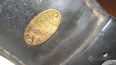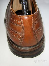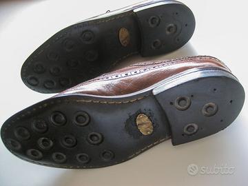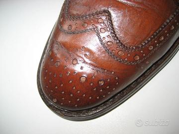 Scarpe "vintage" artigianali stile inglese, colore cuoio naturale, suola in Dainite con piastrina originale "Arfango", lacci in pelle autentici.