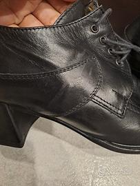 Vendo scarpe vintage anni 90 con lacci e tacco largo di Valentino vera pelle made in italy. La pelle è ancora in ottime condizioni, l'unico difetto viene evidenziato in una delle foto. Il tacco è stato rifatto