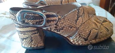 scarpe aperte in punta vintage anni 70 n.34 1/2 in vero pitone tacco quadrato cm 6 marca Lamos (incorporata da Prada)