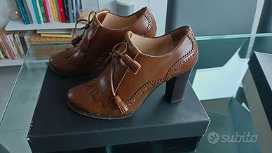 Scarpe pelle vintage Brown modello mocassini con tacco alto. Provenienza Forte dei marmi. Usate pochissimo.