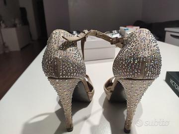 decolte' colore oro con tacco 12 decorato con zirconi