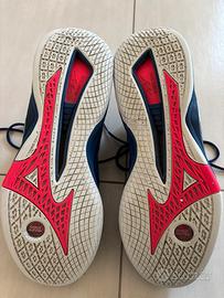 Scarpe pallamano/pallavolo unisex con “non marking sole”. Utilizzata per allenamenti, misura 44 ma calza poco quindi adatta ad un 42/43max. Presenti piccoli segni di usura perchè utilizzata da una ragazza con piede molto magro. La scarpa su internet si trova a prezzo pieno a € 160 scontata a 79,00 su alcuni numeri.
