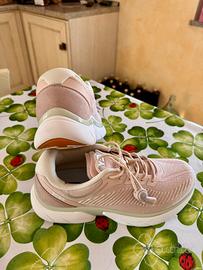 Modello molto comodo e leggero, ideale per chi cerca comfort nella camminata quotidiana. Colore beige/nude facilmente abbinabile, suola ammortizzata e lacci elastici regolabili.