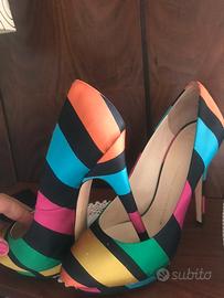 Scarpe Zanotti taglia 40. Alte con tacco 12 e plateau, tessuto in seta gross grain.