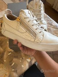 Salve vendo queste due paia di scarpe di Giuseppe Zanotti taglia 39 Quelle nere e 40 Quelle bianche ma vestono un po’ più grandi quindi la 39 veste 40 e la 40 veste 41. Le scapre non presentano grossi segni di usura sono state utilizzate poche volte basta una buona pulita e la scarpa torna come nuova prezzo poco trattabile 300€ entrambe o 150€ singole,astenersi perdi tempo.