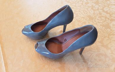 Scarpe aperte Zara, tacco 12, indossate una volta. In vernice grigia. Numero 39. Tacco, suola, soletta e fodera in condizioni perfette.