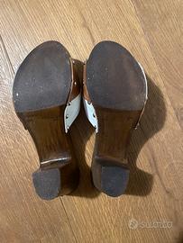 Zoccoli con tacco 8cm, numero 36, vera pelle colore bianco/brandy. Praticamente nuovo indossato pochissime volte. Con scatola inclusa.