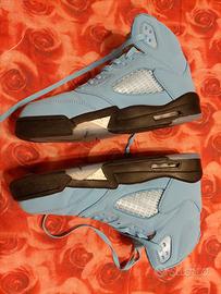 Scarpette Air Jordan 4-tg. 44- bianco-celeste-nero, mai usate, solo in negozio per prova.
