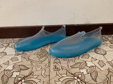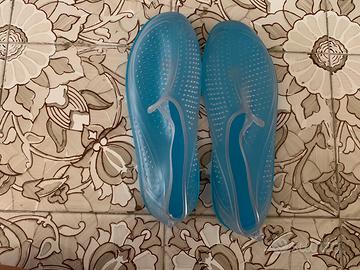 Scarpette da scoglio taglia 37/38 con suola azzurra e sopra trasparente tutto in plastica