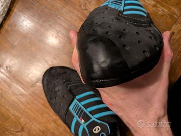 Vendo per acquisto errato, a me vanno troppo strette non riesco ad usarle, usate un paio di volte, numero 44 nero azzurre fatte a calza.