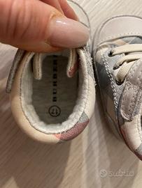 Scarpine Burberry in vera pelle numero 17, insossate solo il giorno del battesimo. Unisex. Perfette. Effetto used. Complete di scatola.