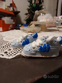 Scarpine da tennis neonato con suola di 11cm eseguite completamente a mano ad uncinetto
