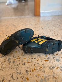 Scarpini da calcio, colore blu e oro, indossate un paio di volte, numero 43 1/3, veste piccolo quindi bisogna prendere 1 numero in più.