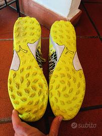 Puma Future Znella vivace colorazione "Yellow Alert/Puma Black/Puma White". Appartenente alla collezione "Game On", questo modello è progettato per garantire agilità e controllo grazie alla tecnologiaFUZIONFIT, una fascia di compressione adattiva nel mesopiede che assicura una calzata precisa e stabile. Modello:Future Z 3.1 TT (Turf Training), progettate per l'uso su superfici sintetiche o dure. Ritiro Via Braccianese o Balduina Roma