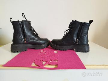 Vendo stivaletti neri stile combat, marca BHOO, modello Cambridge. Taglia 37, con zip laterale e lacci. Suola spessa e antiscivolo, molto comodi e resistenti.
