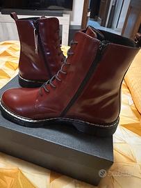 Scarponcini stivaletto donna in pelle Toscablu con lacci e cerniera laterale. Colore bordeaux taglia 41. Nuovi con scatola