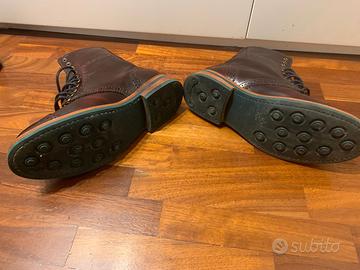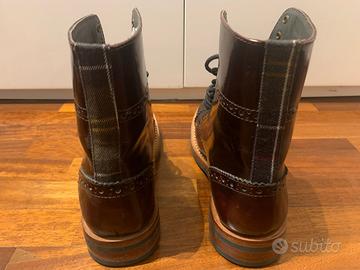 Vendo scarponcini Barbour stringati in pella laccata rosso bordeaux, taglia 5, nuovi
