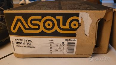 Scarponcini trekking Asolo. usati 2 volte...ma numero errato. Gore-tex e suola in Vibram. numero 36 1/3