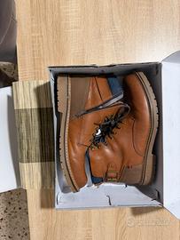 Vendo scarponcini , taglia 47. Le scarpe sono praticamente nuove: mi sono state regalate e le ho indossate soltanto per un'ora per provarle, ma purtroppo non si adattano al mio stile personale. Come visibile dalle foto degli interni, non presentano alcun segno di usura. CARATTERISTICHE • Brand: Bugatti (marchio leader per comfort e stile). • Taglia: 47. • Colore: Cognac / Marrone chiaro con dettagli in blu denim e finiture in tessuto scamosciato. • Interno: Fodera interna a quadri molto curata e calda. • Dettagli: Chiusura con lacci e comoda zip laterale per facilitare la calzata. Fibbia decorativa esterna che dona un tocco vintage/casual.