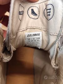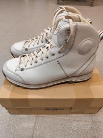 scarponcini unisex taglia 41,5 (UK 7,5) in perfette condizioni paragonabile al nuovo. in pelle bianca, suola in vibram con carro armato praticamente nuova. soletta interna nuova in cuoio morbido. Scarpa adatta ad ogni circostanza, sia montagna che città.