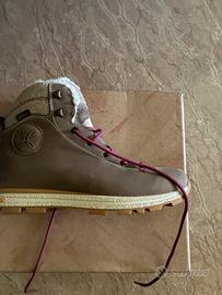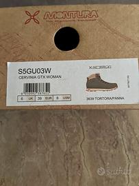 Vendo splendidi scarponcini da trekking/outdoor Montura Cervinia GTX (Woman), taglia 39 EUR. Caratteristiche principali: • Membrana Gore-Tex (GTX): Impermeabili e traspiranti, piedi asciutti in ogni condizione. • Colore: Tortora/Panna (molto elegante e versatile). • Suola: Grip eccellente su ogni terreno. • Stato: Pari al nuovo, complete di scatola originale.