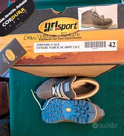 Vendo scarponi da trekking Grisport n. 42 uomo in perfette condizioni usati una sola volta! Suola in vibram, ottima aderenza e antiscivolo. Tomaia in nabuk colore grigio cenere, interno imbottito per maggior conforto e con allacciatura rinforzata.
