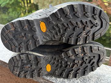 Scarponcini modello Mescalito ditta Scarpa. Usati pochissimo come si può vedere dai dettagli della suola. In buone condizioni.
